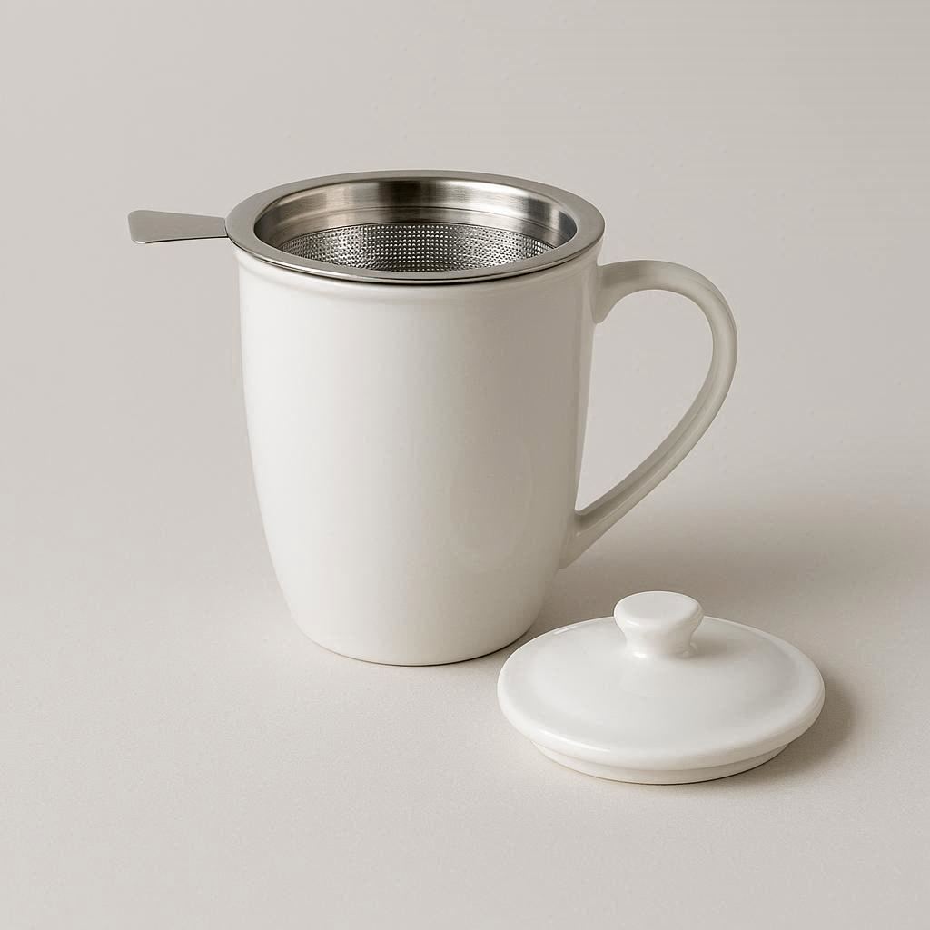 Porcelain Tea Mug with Infuser & Lid – Convenient for Loose Leaf Tea, Easy Clean
